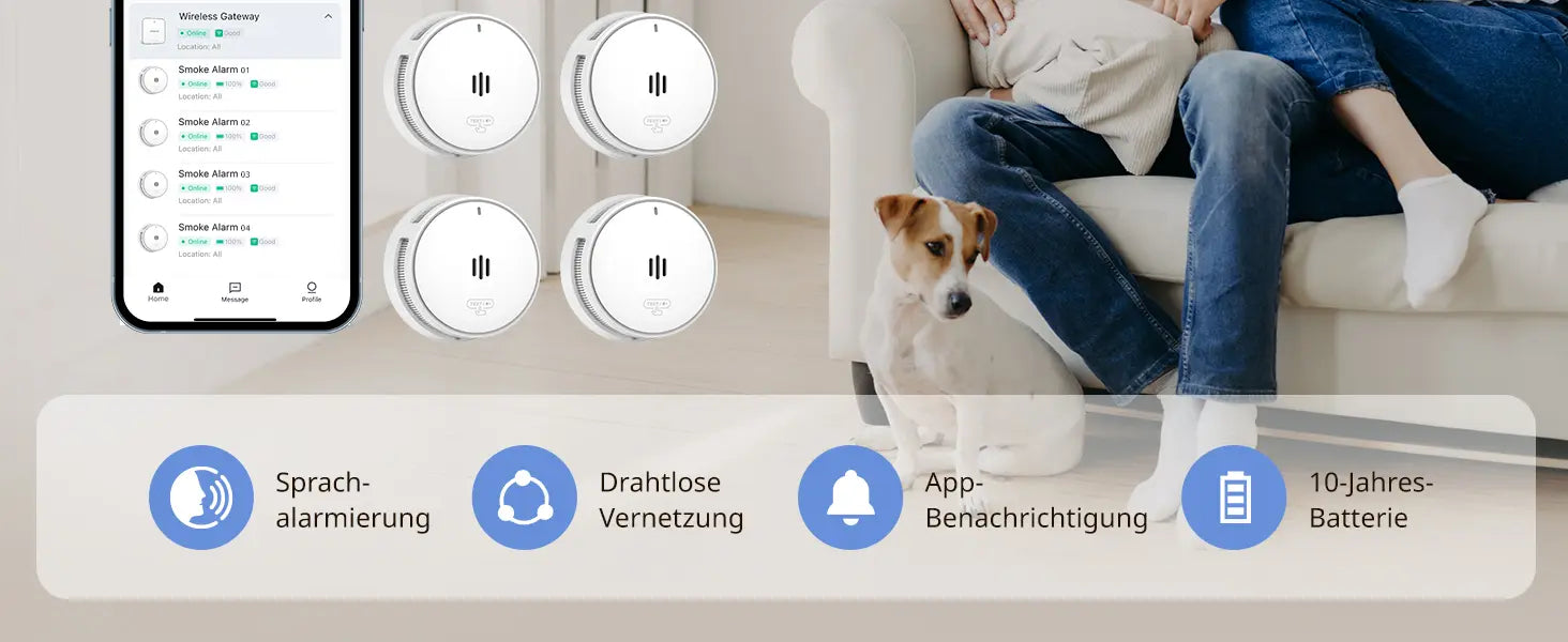 Selbstverständlich. Dieses Gateway und der Rauchmelder können bis zu 24 Geräte gleichzeitig verbinden. Wählen Sie für den Anschluss jedoch bitte den Rauchmelder mit dem Produktmodell S05-R8-B.