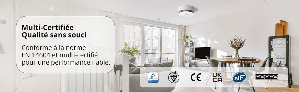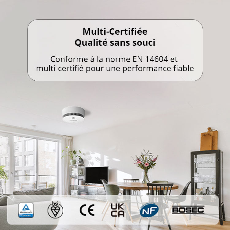 La certification NF (Norme Française) est un label de qualité français délivré par AFNOR. Pour les détecteurs de fumée, elle garantit que l'appareil a été testé par un organisme indépendant et qu'il est conforme aux normes de sécurité et de performance françaises et européennes les plus strictes (allant au-delà du marquage CE). C'est un gage de fiabilité et de durabilité supérieures.