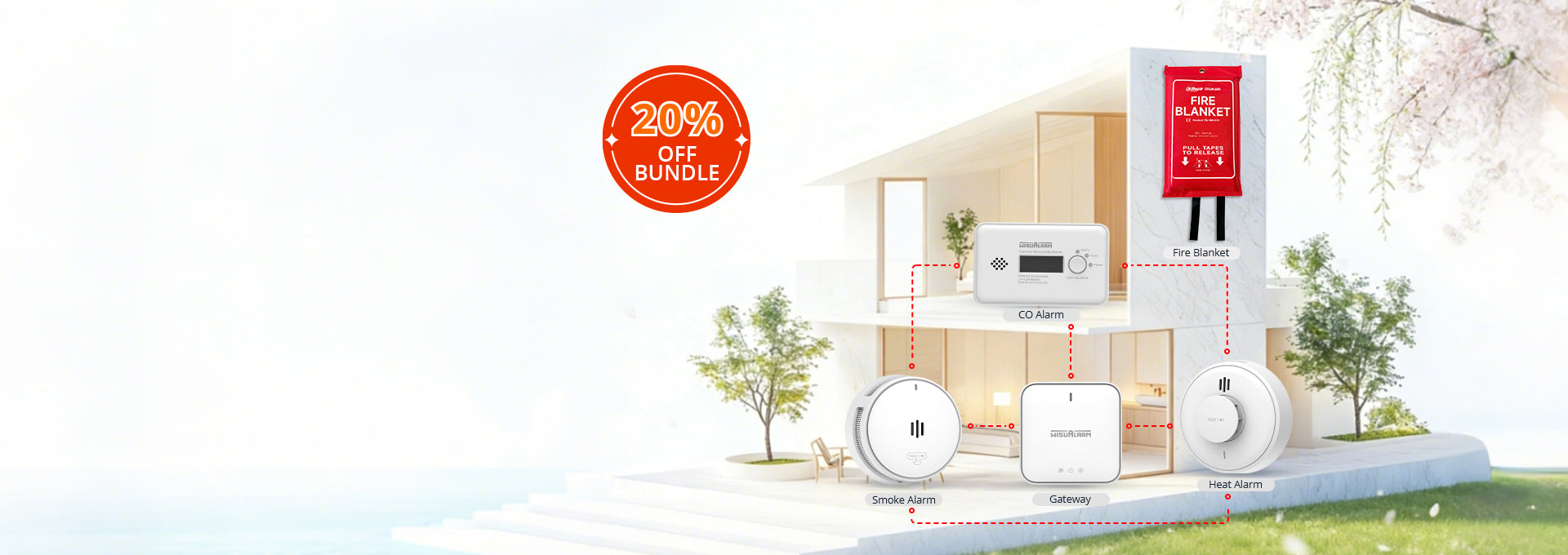 The 20% OFF is an exclusive Bundle-Only discount. By purchasing the "Spring into Safety" set (Gateway + Camera + Alarms + Fire Blanket), you save significantly more than buying items individually, giving you the highest level of protection at our best price of the year.
