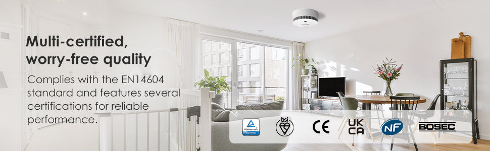 NF Certification (Norme Française) is a French quality mark issued by AFNOR. For smoke detectors, it guarantees that the device has been tested by an independent body and complies with the strictest French and European safety and performance standards (going beyond the basic CE mark). It is a sign of superior reliability and durability.