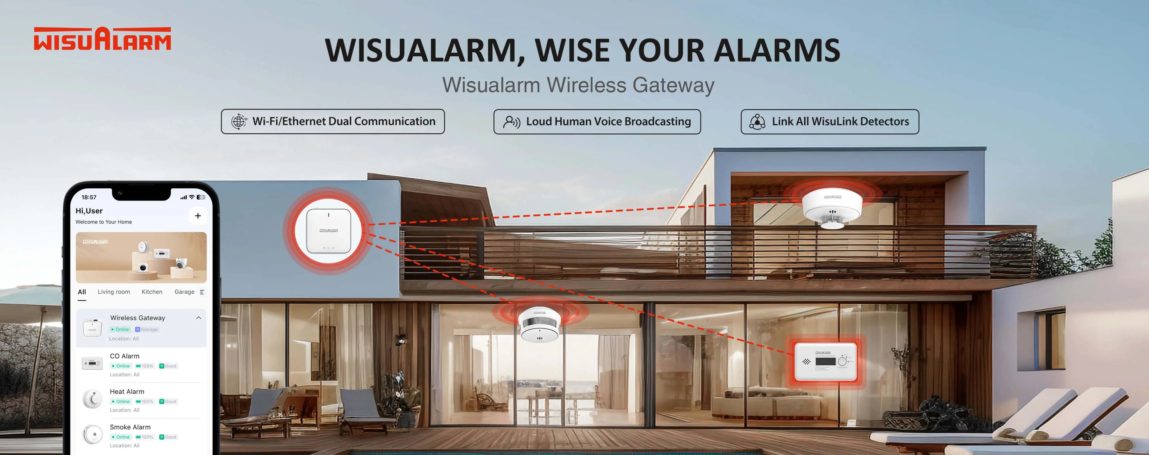 Finish gateway’s internet setup first. Log into its admin panel, go to "Device Pairing". Put Wisualarm into pairing mode (hold setup button till light flashes). Select the detector in the gateway’s scan list to complete pairing.
