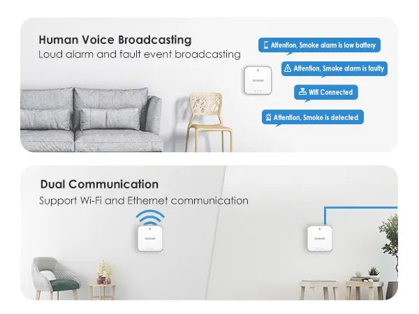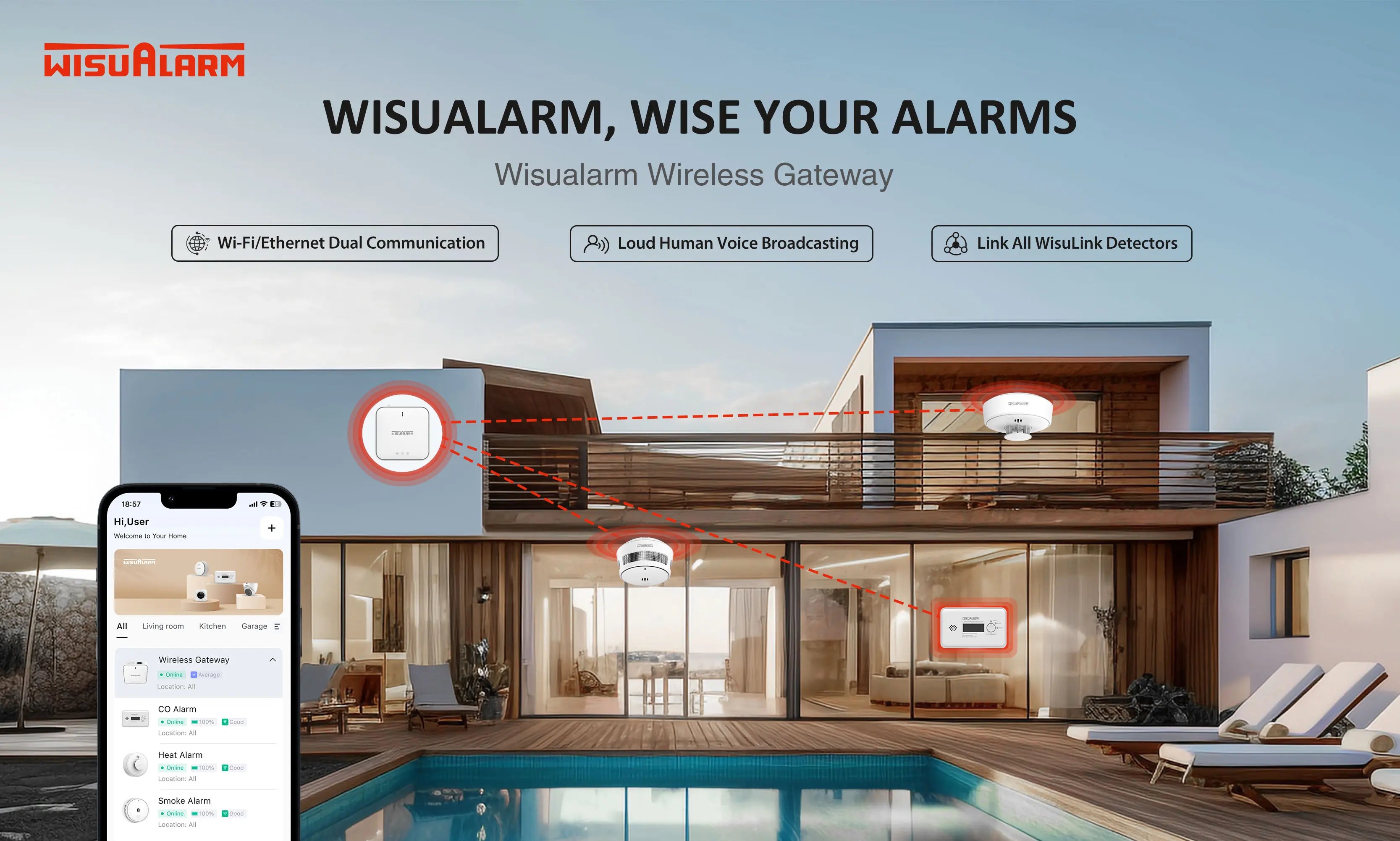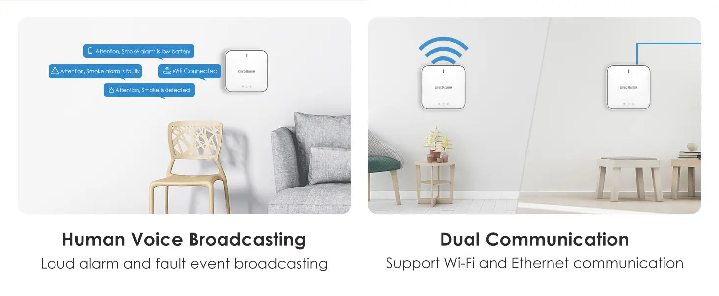 Gateway is the central product of the wireless interconnected network, and it can bring all your detectors online. When you go outside, you will also receive the notification via your smart phones.